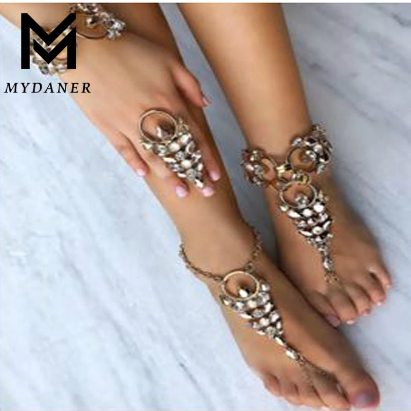 MYDANER женский модный браслет на лодыжку Сексуальная цепочка для ног в стиле бохо ножные браслеты с кристаллами для свадьбы босоножки пляжные ювелирные изделия для ног