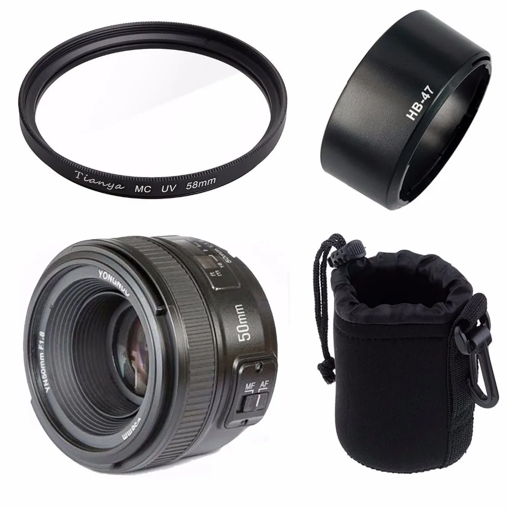 YONGNUO YN 50 мм YN50mm f/1,8 AF объектив + бленда + УФ фильтр + чехол для объектива Набор Автофокус для камер Nikon AF-S 50 мм 1,8G