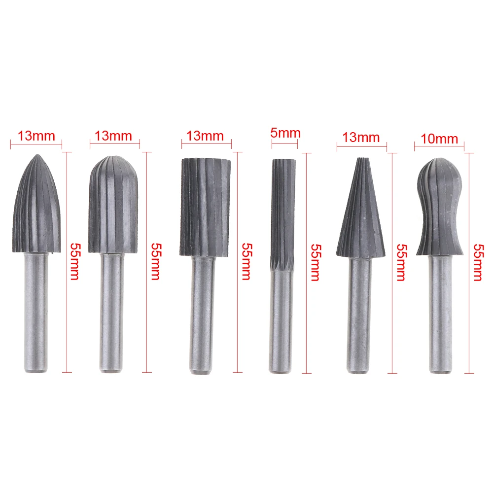 Набор фрез вольфрамовых стальных, 6 шт.лот, хвостовик 6 мм