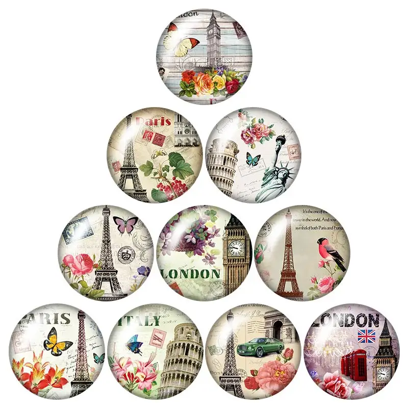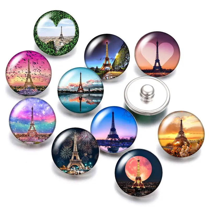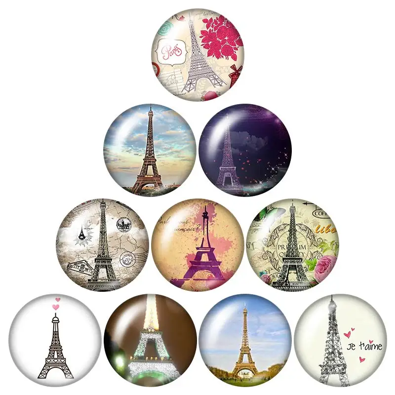 DB1010 Эйфелева башня декорации 18 мм кнопки 10 шт. круглые фото кабошоны разрисованные изделия из стекла стиль для кнопки ювелирные изделия