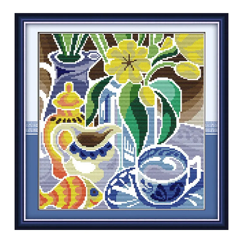 Синие и белые фарфоровые цветы, штампованные наборы для вышивки крестом, напечатанные 11CT 14CT Счетный крест, вышитые картины
