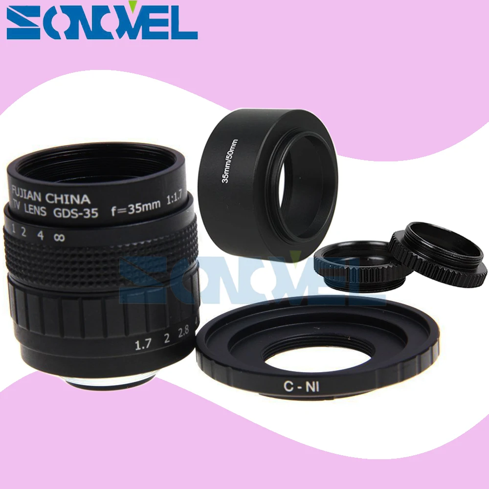 Фуцзянь 35 мм F1.7 CC TV Movie lens + C Mount + Macro ring + металлическая бленда для объектива Nikon 1 AW1 S2 J5 J4 J3 J2 J1 V3 V2 V1 C-NI