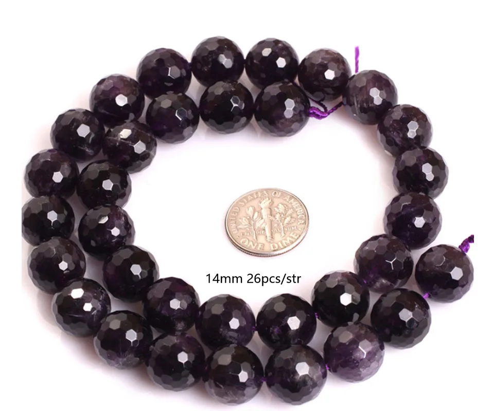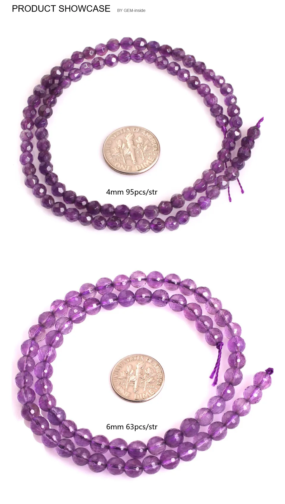 Бусины Круглые граненые для браслета, 6, 8, 10, 12 мм, из натуральн...
