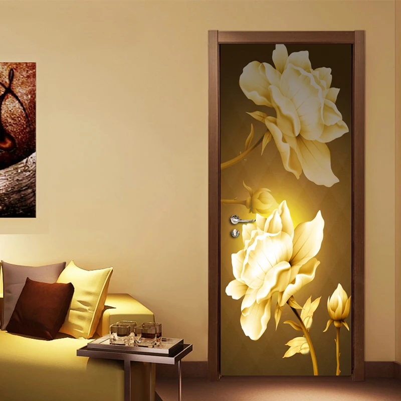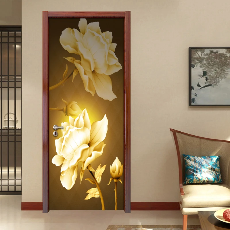 3D винтажная Цветочная дверная наклейка Настенные обои домашний декор спальня гостиная украшение двери ПВХ водостойкая Наклейка Настенная бумага