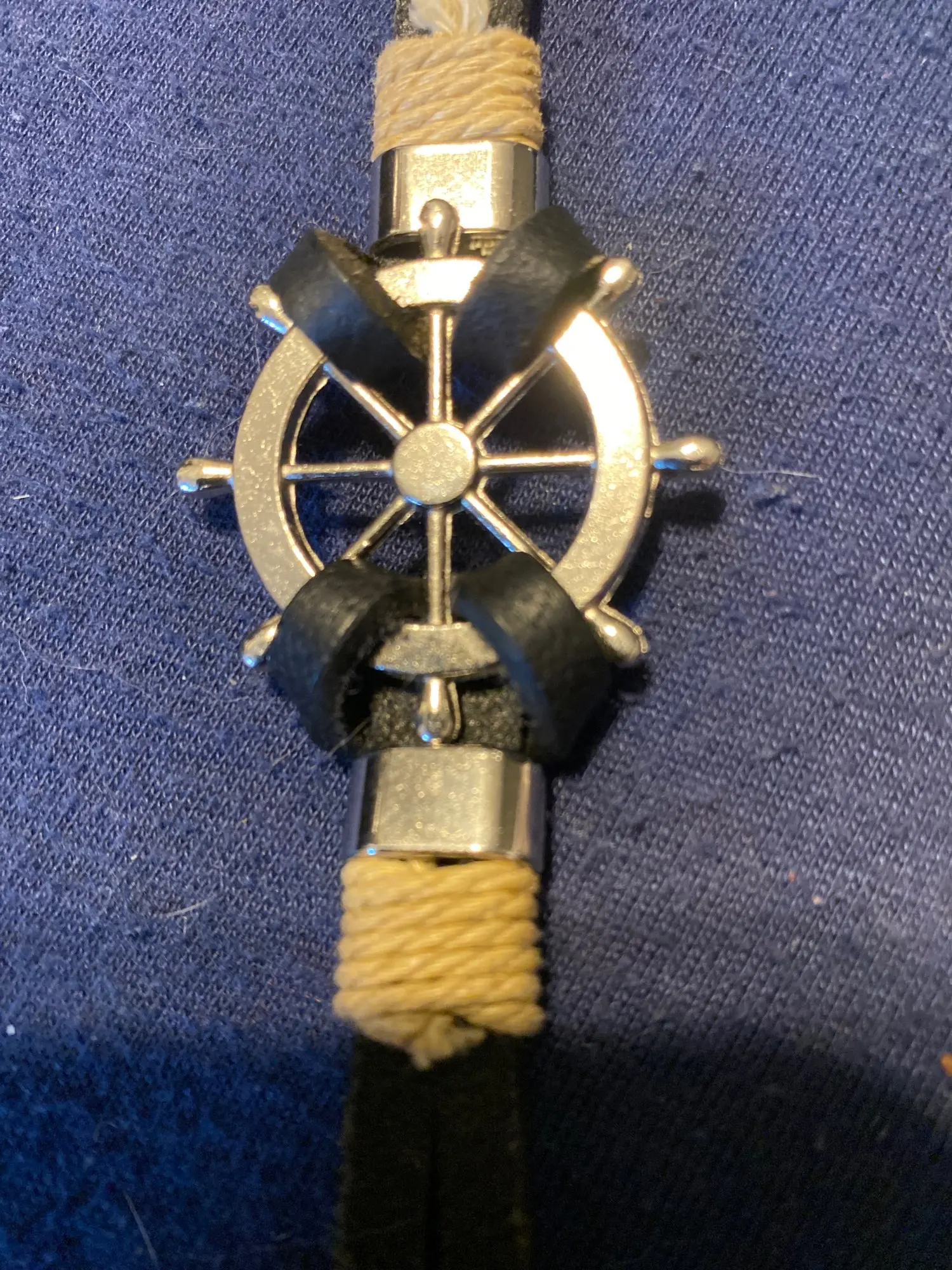 Браслет со штурвалом мужской, Двухслойный Кожаный классический винт...