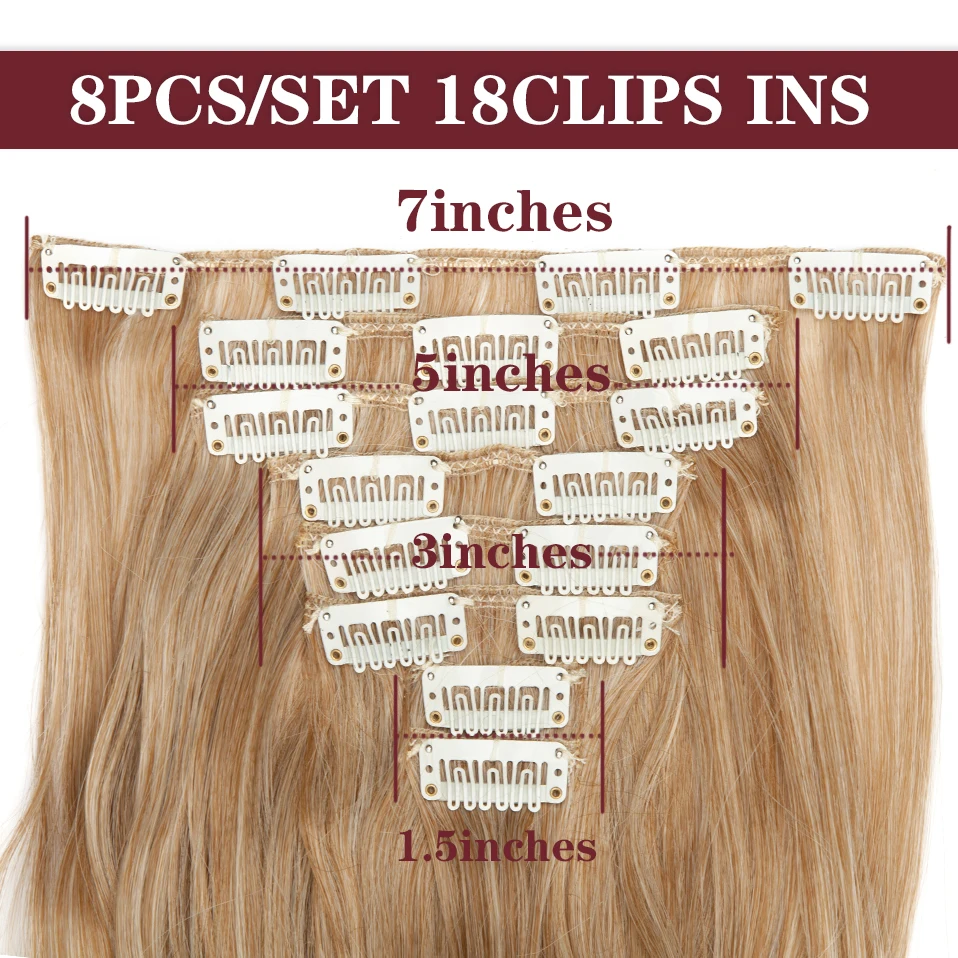 Накладные волосы для женщин S-noilite, 24 дюйма, 140 г, 8 шт.компл., на зажимах, 18 зажимов, натуральные шиньоны синтетические зажимы для волос