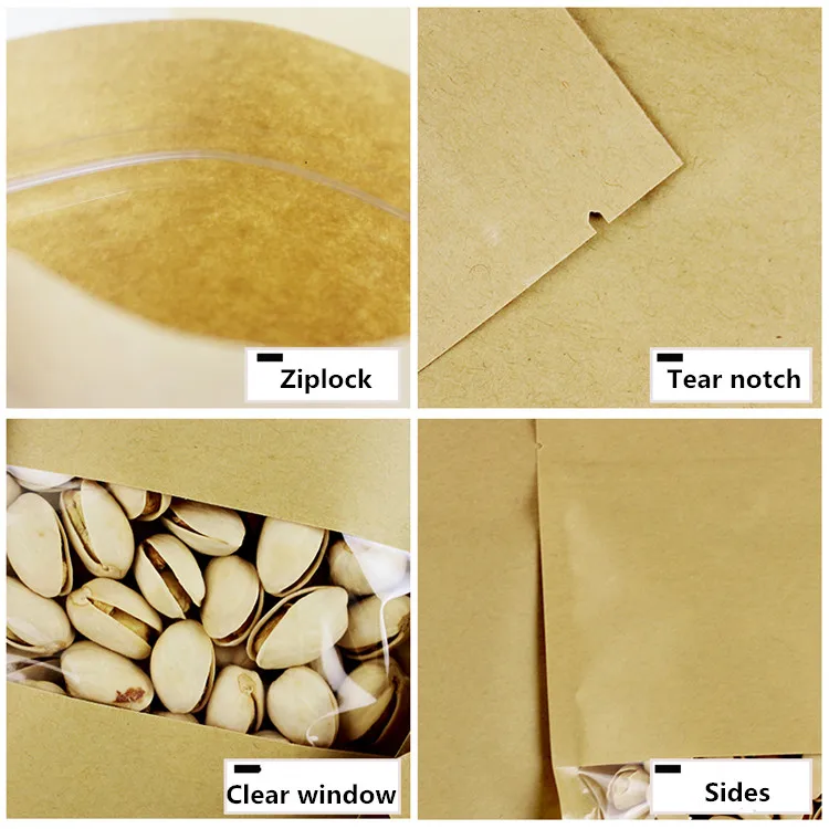 50 шт., пакеты из крафт-бумаги с застежкой-молнией