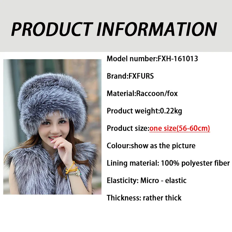 Шапка женская из натурального меха енота, на осень и зиму, FXH-161013