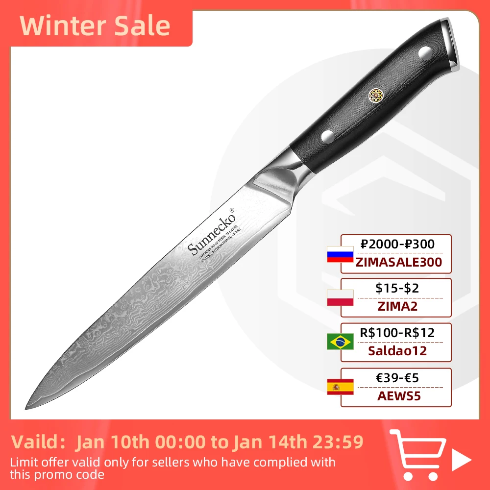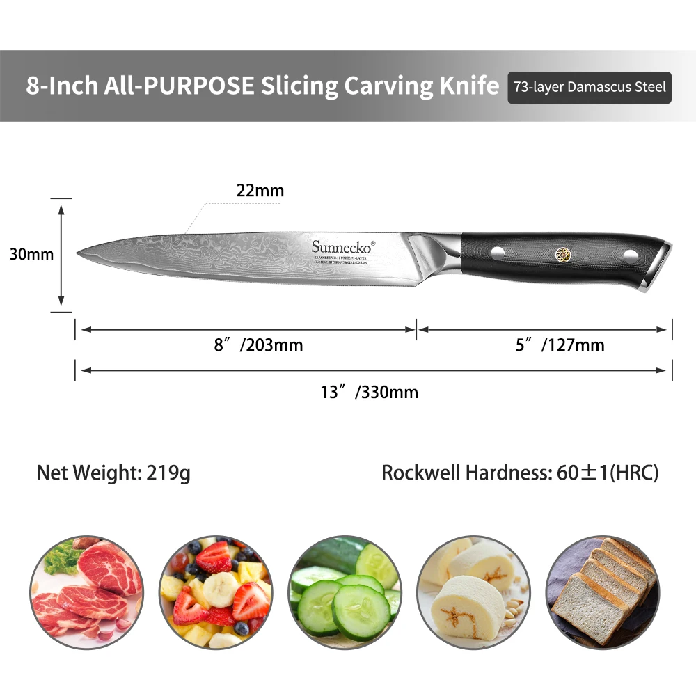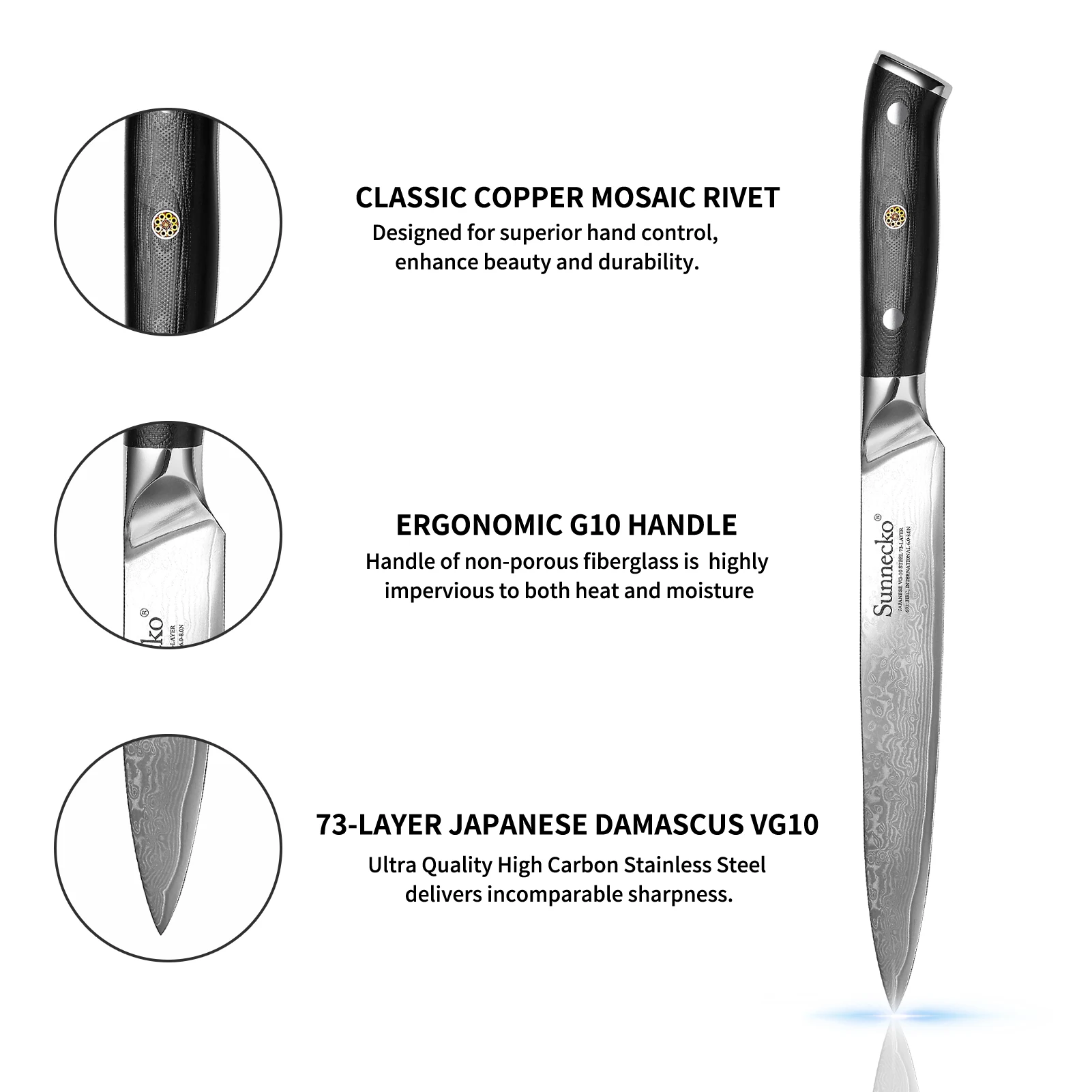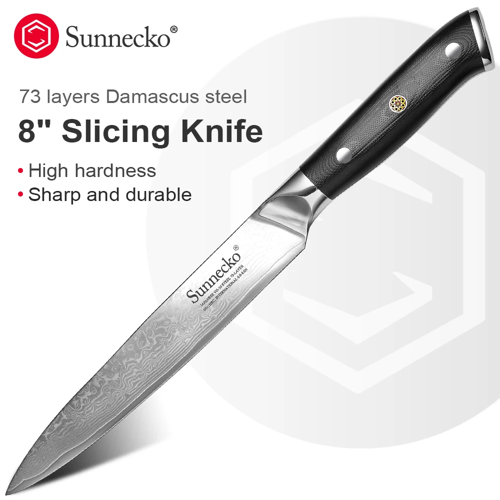 Кухонный нож SUNNECKO VG10, японское лезвие из дамасской стали, острый кухонный нож 8 дюймов, лезвие из стали G10, ручка шеф-повара, нарезка