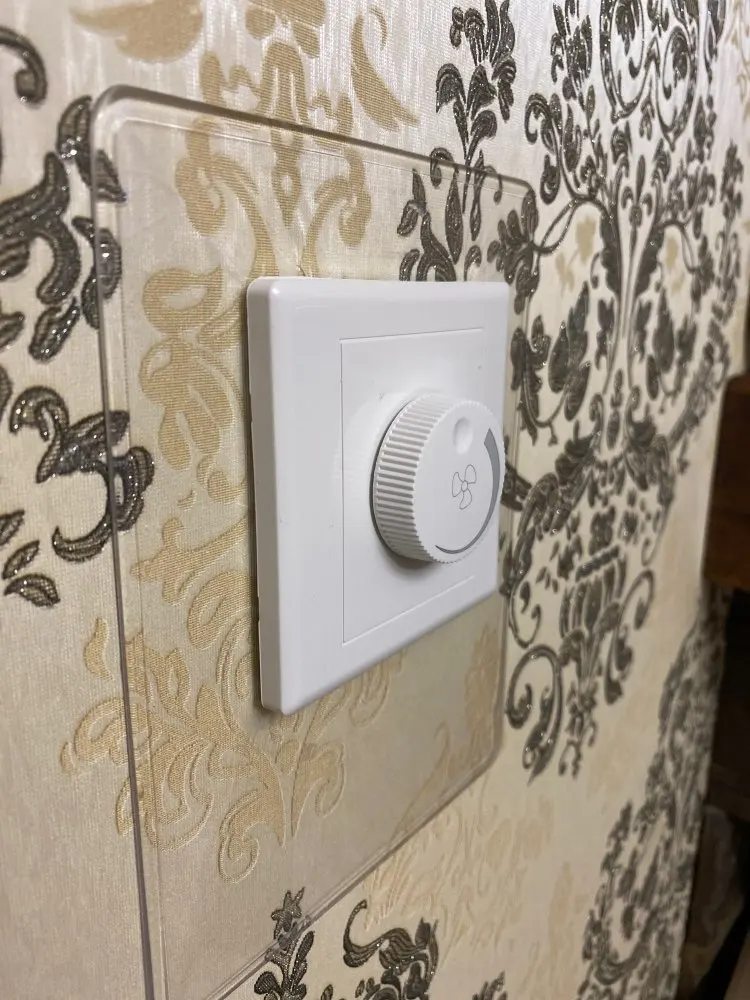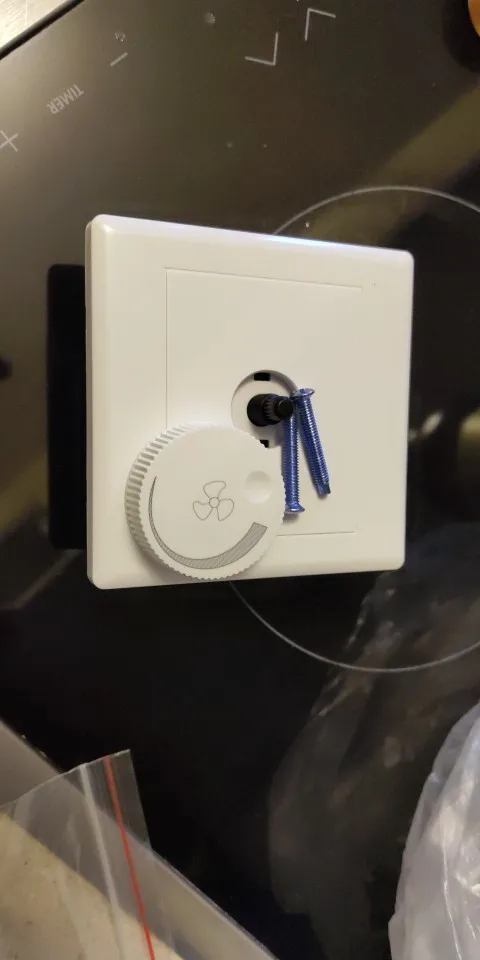 Диммер отлично справляется со своей функцией - плавно регулирует мощность вытяжного вентилятора. НО полной неожиданностью стало то, что он не вошёл в стандартную коробку, из которой мы вынули обычный выключатель. Мужу потребовалось некоторое количество танцев с бубном и прямоугольная коробка) имейте ввиду!