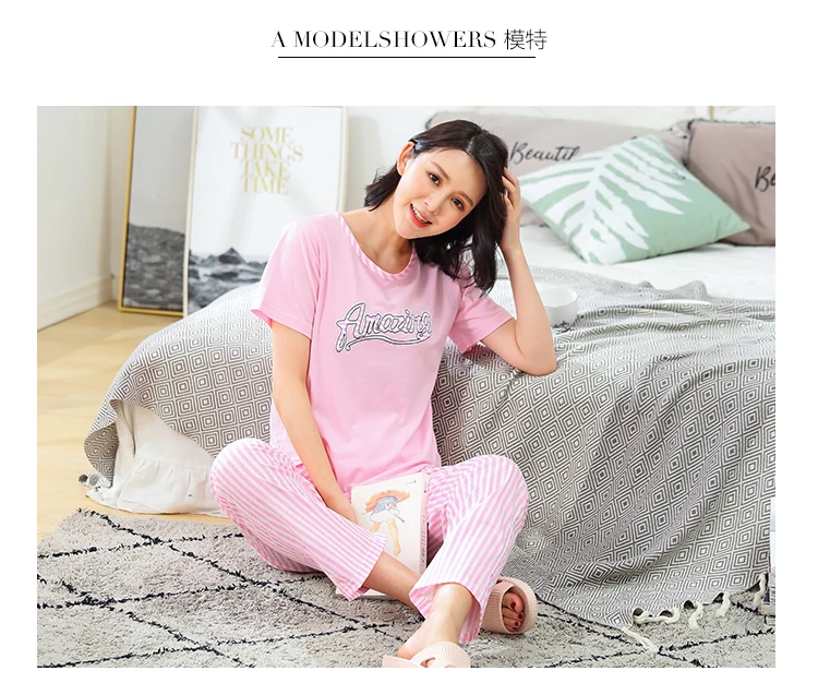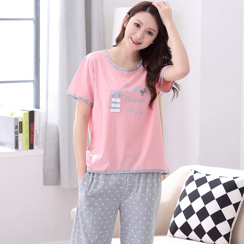 Новое поступление 2020, женские хлопковые пижамы, женские пижамные комплекты для девочек, мультяшная одежда для сна, пижамы для женщин, спортивный костюм с коротким рукавом