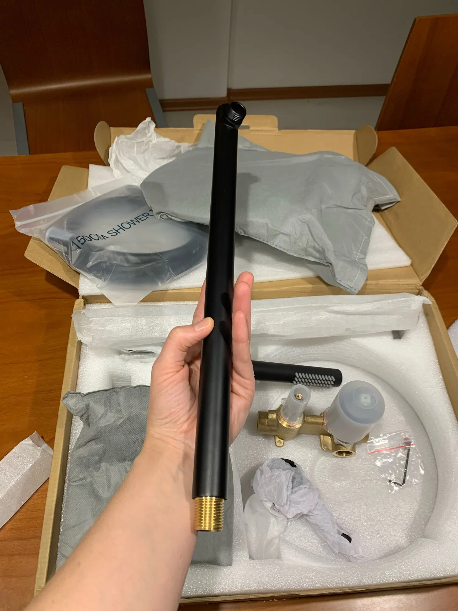 Магазин. Продавец очень долго отправлял заказ, так же долго отвечает. Инструкцию к подключению сбросил в личные сообщения по просьбе, но через 5 дней после запроса. Доставка. Отправили через федекс, крайне быстро. До Одессы дошло за две недели. Товар. Очень тяжелые детали, латунная часть сделана отлично, качественно, чего не сказать о краске, которая царапается буквально от воздуха, хоть в описании заказа было указанно что там трёх слойное покрытие. Прикрепил картинку где видно как некоторых местах слезла краска (после первой примерки ручной лейки). Вес деталей прикрепил на фото. В целом за такие деньги товар не плохой.