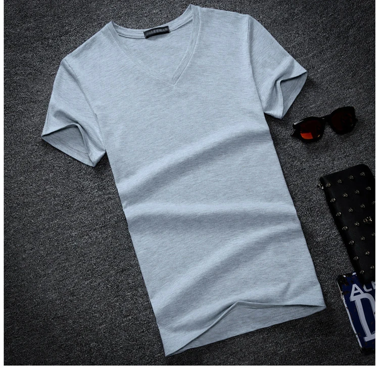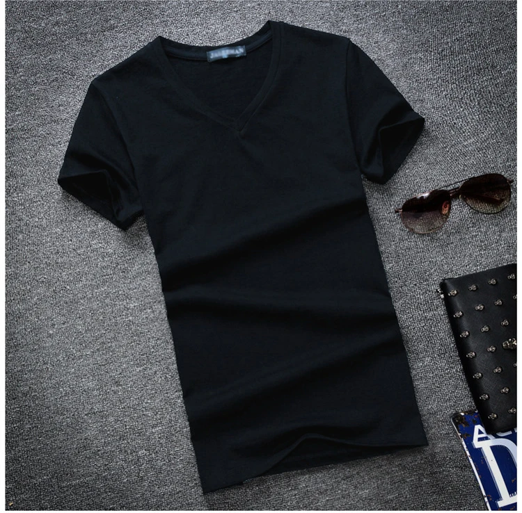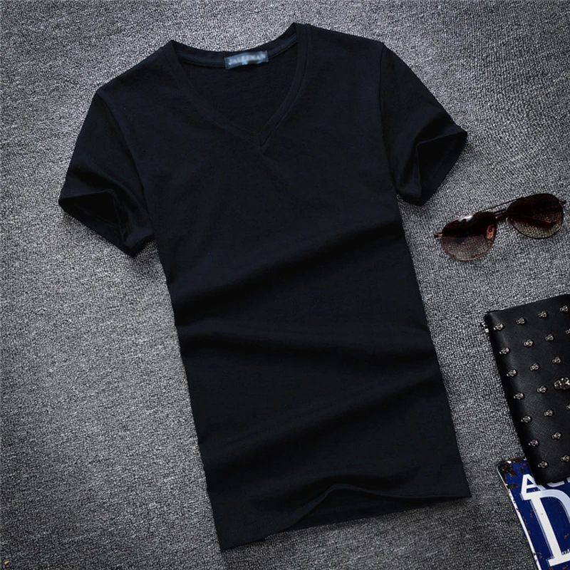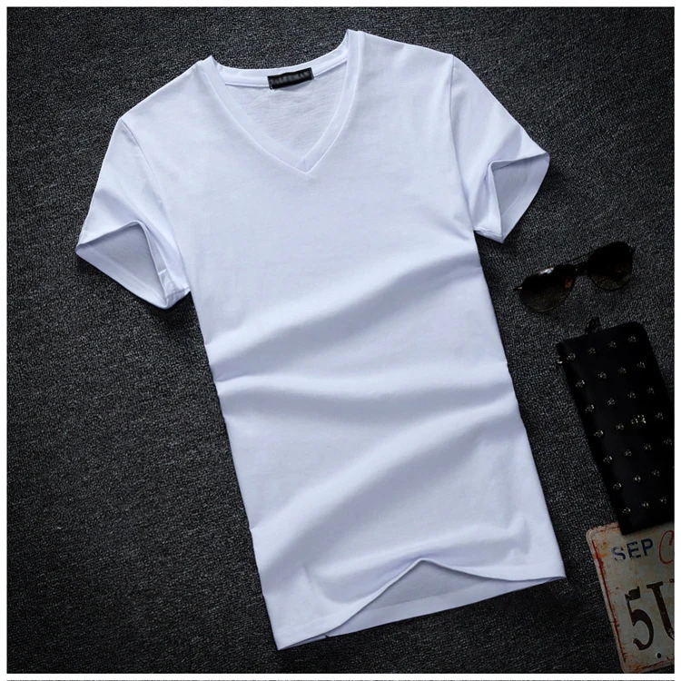 Футболка мужская хлопковая приталенная, тенниска с короткими рукавами и V-образным вырезом, винтажная рубашка, цвет белыйчерный, на лето, 5XL