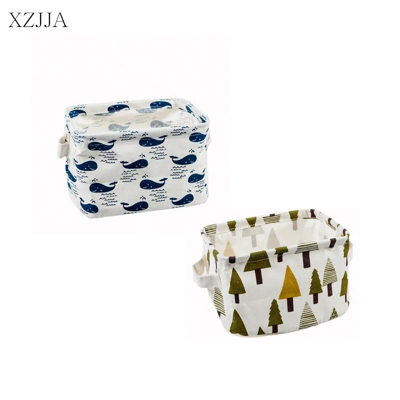 Коробка для хранения игрушек XZJJA в горошек с животными, из хлопка и льна, корзины, складной органайзер для макияжа, контейнер для косметики, туалетный стол настольный
