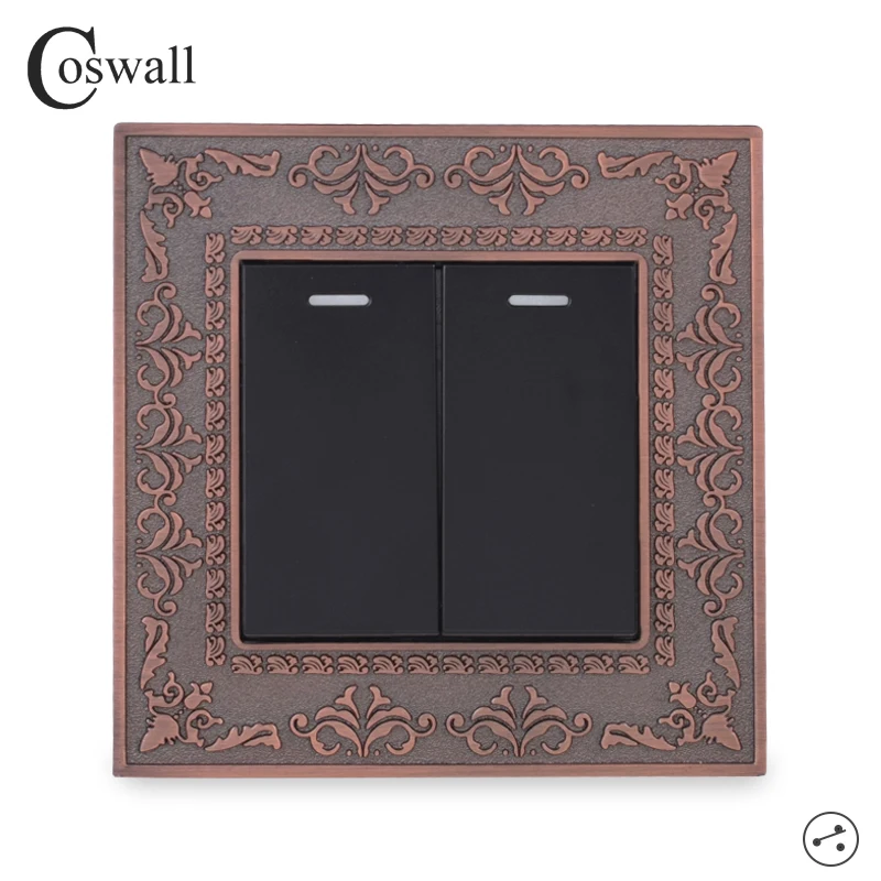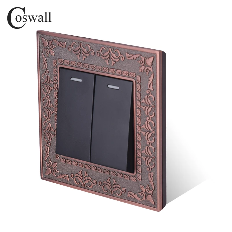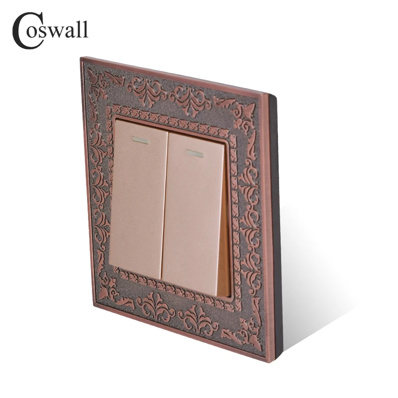 Панель Coswall из цинкового сплава в стиле ретро, переключатель света, красная бронза, золотистаячерная, 2 клавиши, двухсторонний, переключатель, настенный
