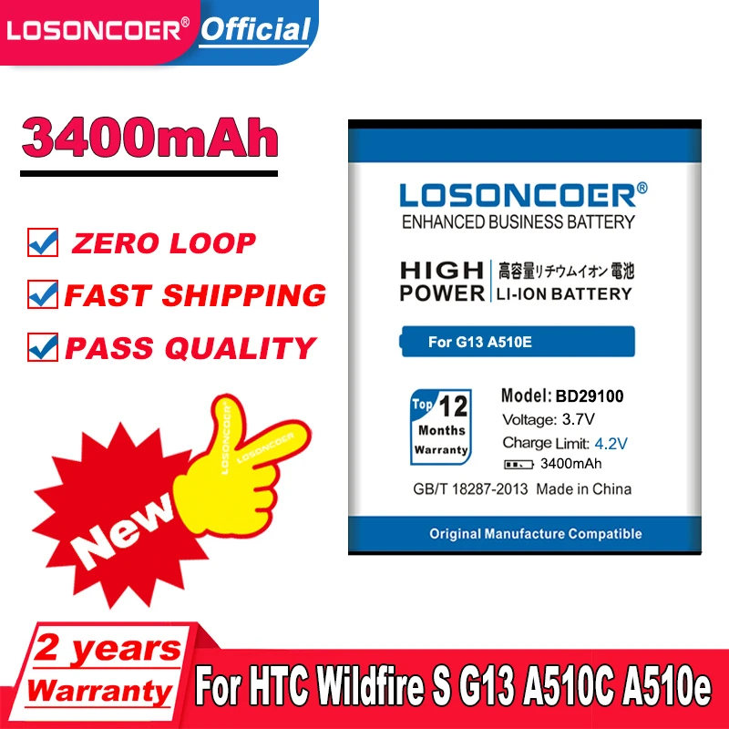 Аккумулятор LOSONCOER 3400 мАч BD29100 для HTC G13 Wildfire S A510e A510C T9292 HD3 HD3s HD7 PG76100 T9292