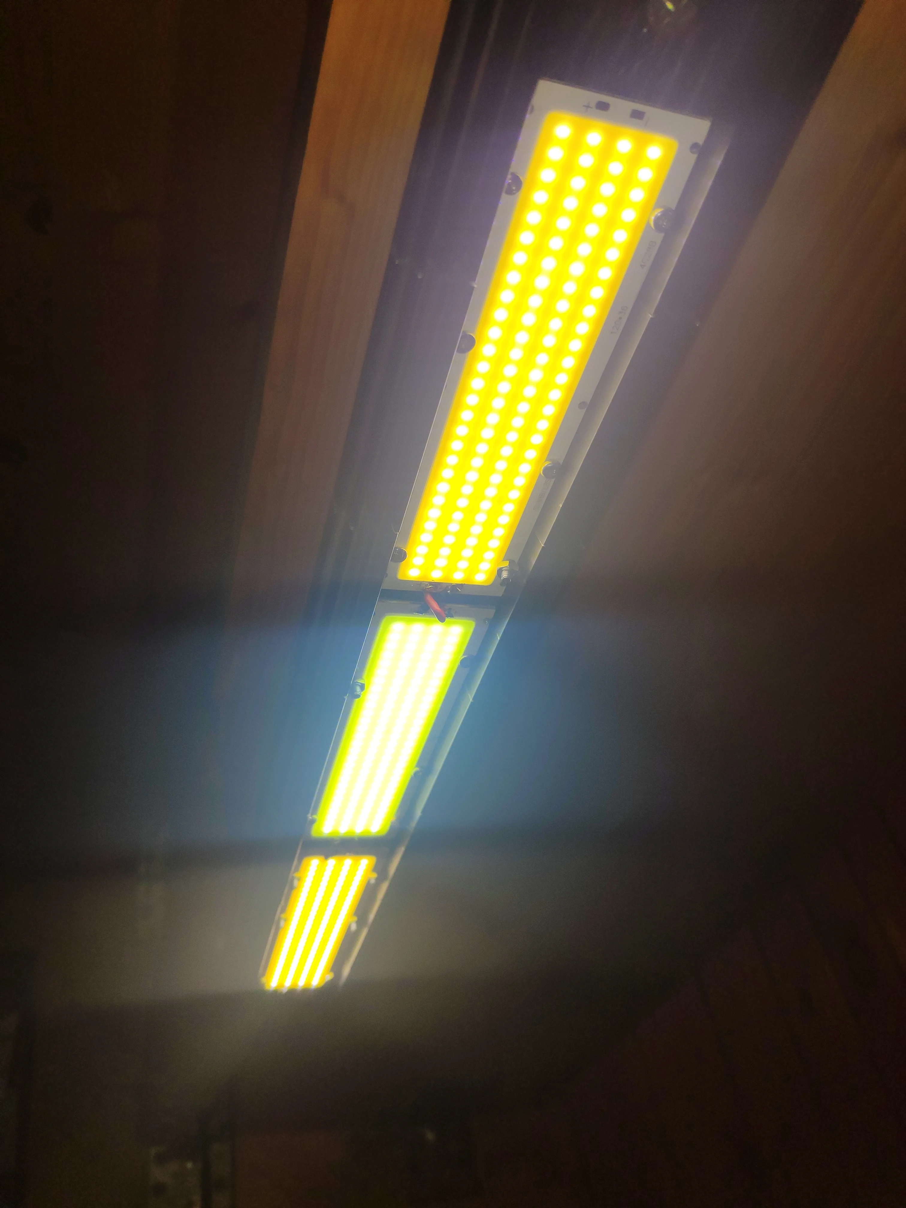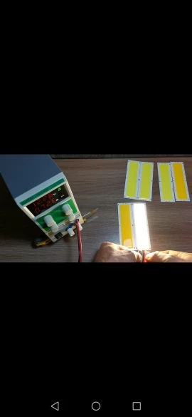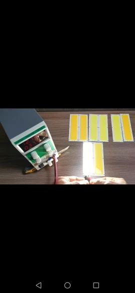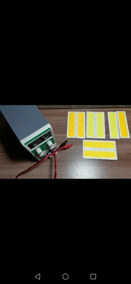 Супер мощная панель! Не испытывал предельную мощность, но при 14,4V хх и ограниченном токе в 2А, потребляет все 2, напряжение проседает до 12,6V. На выходе 25,2 Ват мощности! Подложка греется умеренно, но боюсь спалить. Светит так, что ослепляет глаза, смотреть невозможно! Доставлено за 2 недели! Респект и уважуха продавцу!!!