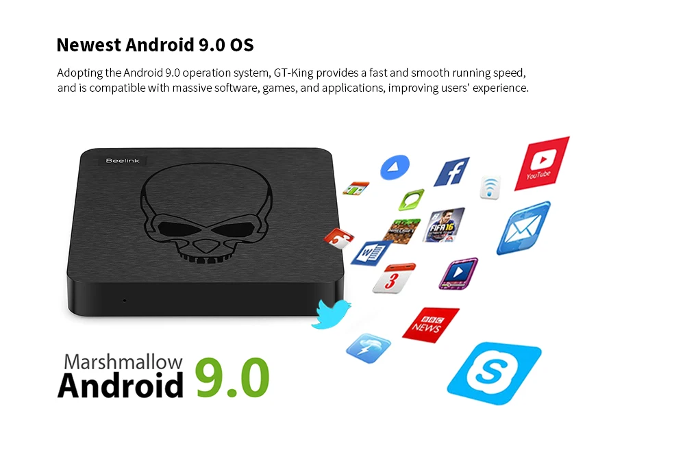 ТВ-приставка Beelink GT King Android 9,0 Amlogic S922X шестиядерный G52 MP6 графика 4 Гб LPDDR4 64 Гб ПЗУ WiFi 6 Bluetooth 4,1 4K 75 Гц