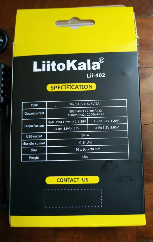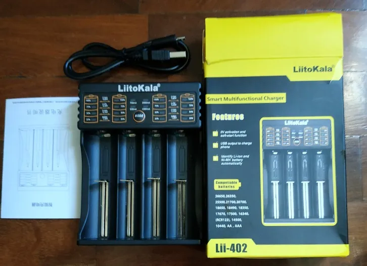 Комплект поставки: 1 станция для зарядки Liitokala Lii-402 1 кабель USB 1 руководство пользователя 1контрольный номер