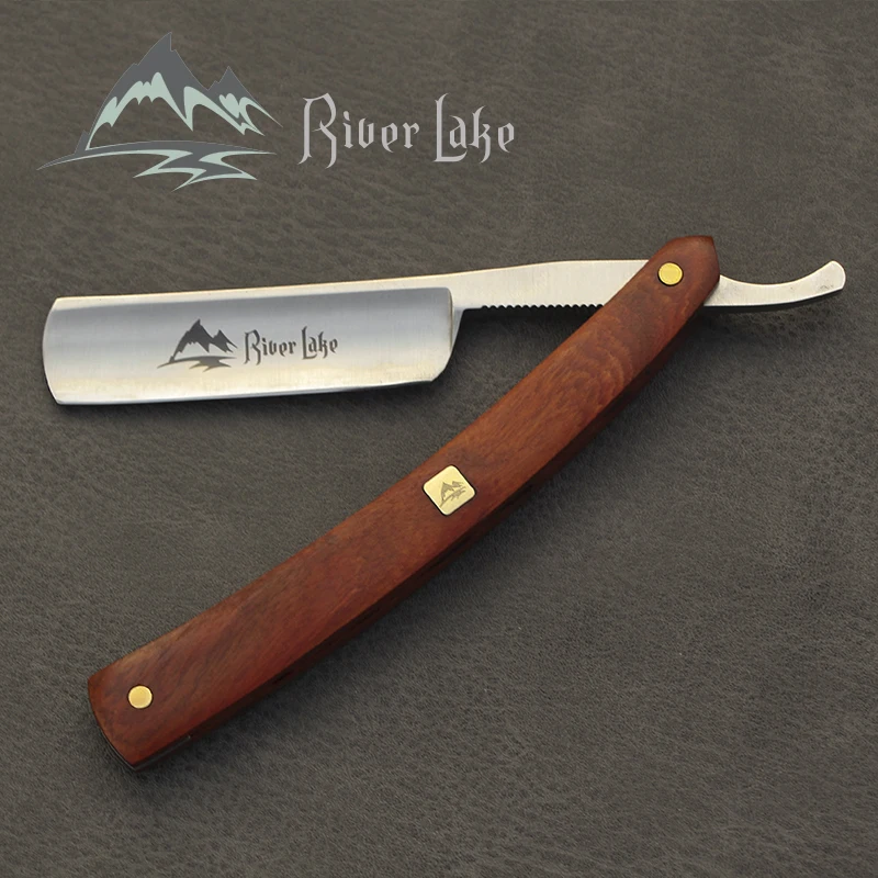 Бритва для парикмахеров River lake, набор для бритья, прямая бритва, ручная бритва, деревянная ручка, кожаный бритвенный, ручная работа