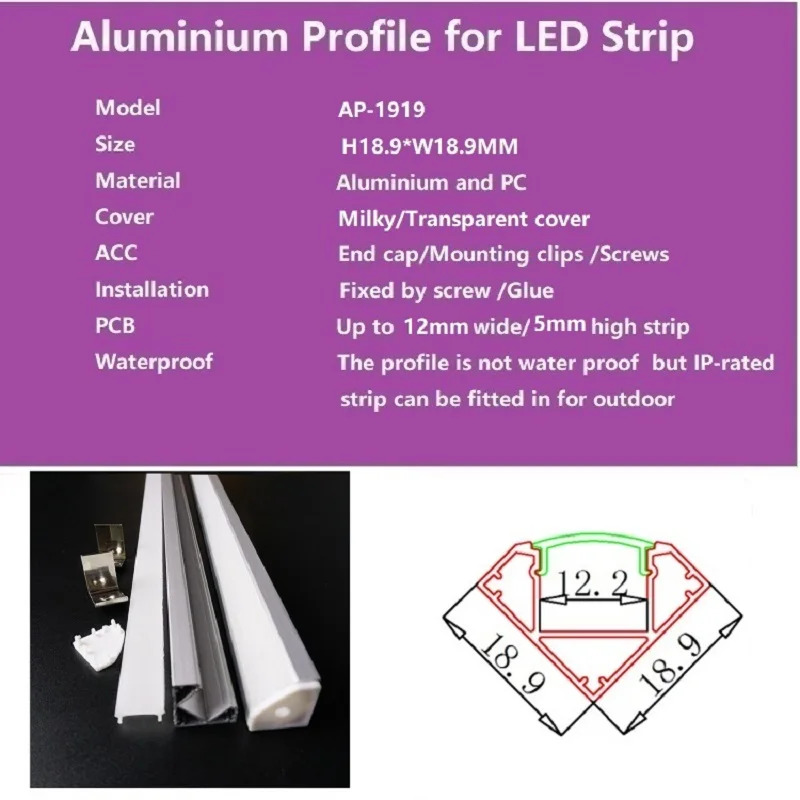Алюминиевый профиль для светодиодной балки, 45 градусов, угловой алюминиевый канал, 12 мм, 5-30 шт.лот, 40-дюймовый светодиодный алюминиевый корпус