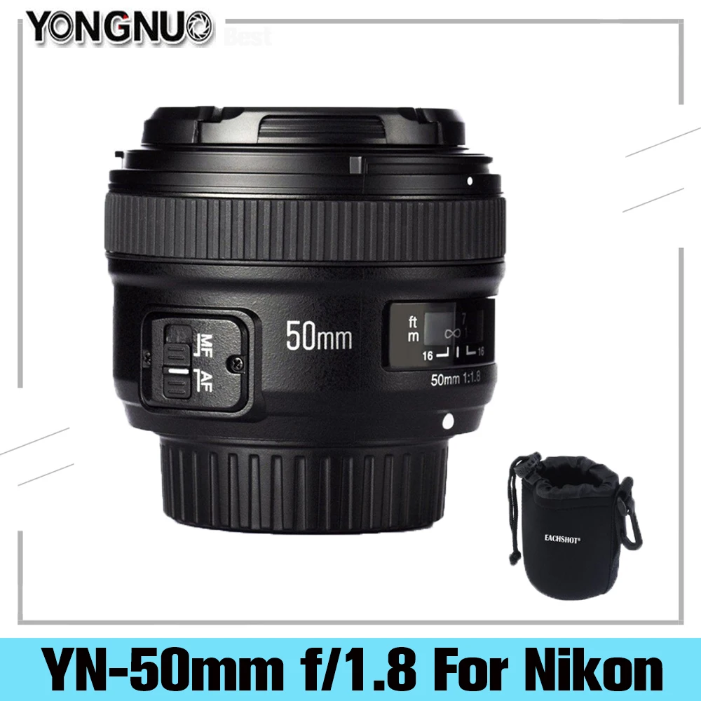 Объектив YONGNUO 50 мм f1,8, объектив YN 50 мм F1.8 с большой апертурой и автофокусом для цифровой зеркальной камеры Nikon D5300 D3200 D3100 D7200 D700