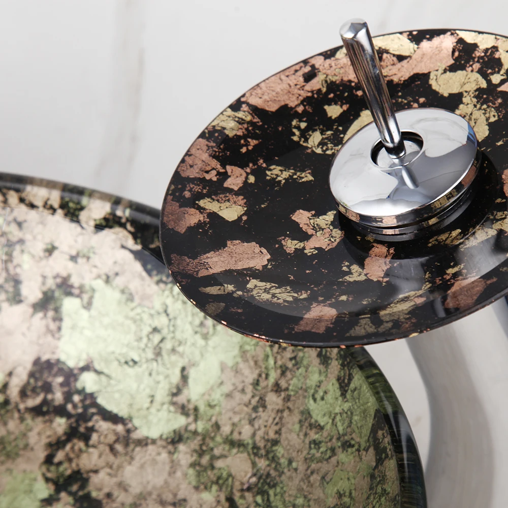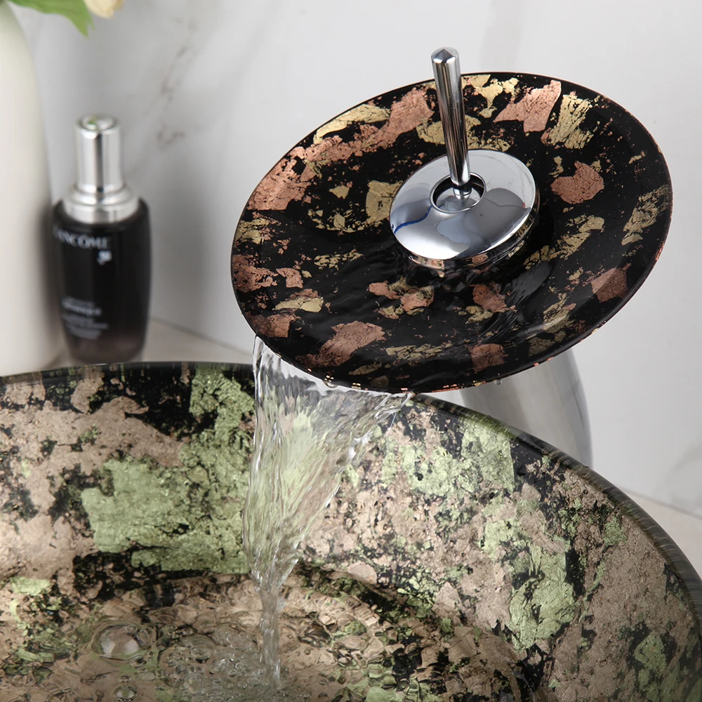 KEMAIDI смеситель для раковины с одной ручкой из закаленного стекла ручная роспись чаша кран для туалетной комнаты раковины ванной комнаты латунный смеситель кран Набор