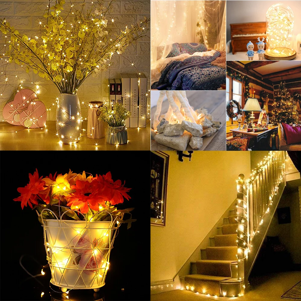 16,4 фута 5 м 50 светодиодный светильникТеплый белый/холодный белый/Разноцветный медный провод с питанием от аккумулятора, светодиодные гирлянды, Звездные огни для помещений, украшения для улицы, Свадебная вечеринка, декор для улицы, Сказочная струнная лампа