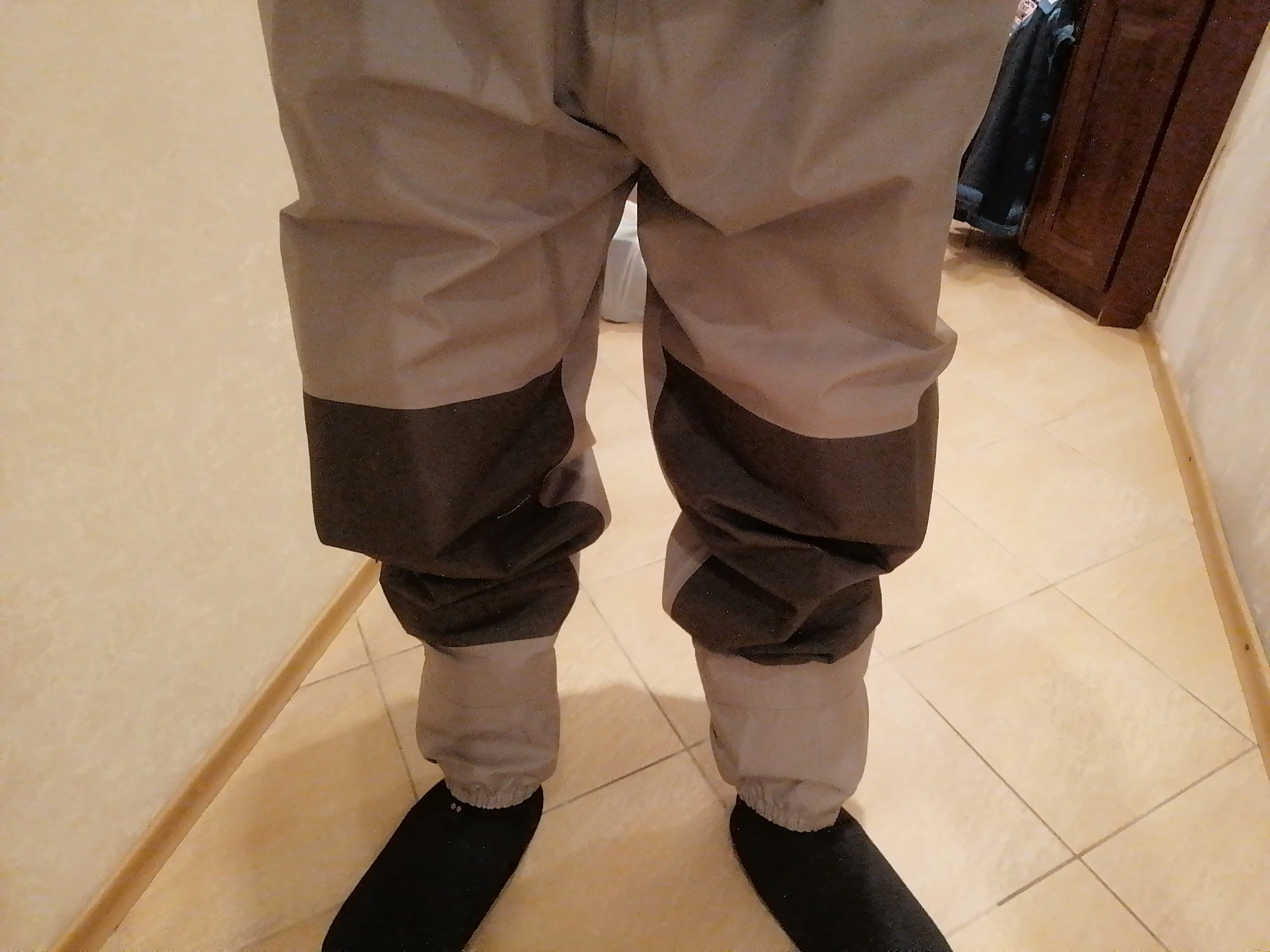 Вейдерсы на вид неплохие. Швы проклеены качественно. На свой рост 180 см, вес 75 кг, худощавого телосложения заказал размер L и думаю что с размером не ошибся. По размеру ноги (а у меня 42) только- только с носком. У кого 43 возможно будут уже жать. Из минусов, на мой взгляд, это невысокие параметры влагоотвода и водонепроницаемости, для меня штаны немного широки, лямки для ремешка пришиты низковато. В целом удовлетворен за эти деньги (4500).Надеюсь, что летом опробую и добавлю результат.
