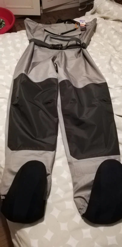 Я не пробовал в воде, но, кажется, хорошее качество. Доставка в Европу занимает 1,5 месяца. Я купил размер L (180 см/83 кг/43 фута европейского стандарта). Мне нужен этот размер, если я хочу сидеть, когда я ношу его для рыбалки на каяке. Ноги, грудь, бедра и высота подходят мне, но они очень свободные на ногах.