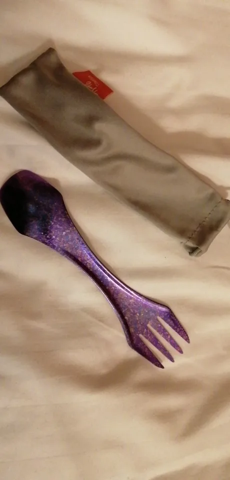 Доставка в СПб 18 дней. Ложка-вилка сделана качественно, легкая, тонкая, прочная. Размер не однозначен, вилкой хорошо из общего котелка есть, ьольшая, а вот ложкой только торт или ягодки,, как лопаточка мелкая, мелкая, но для чайной великовата. Спасибо.
