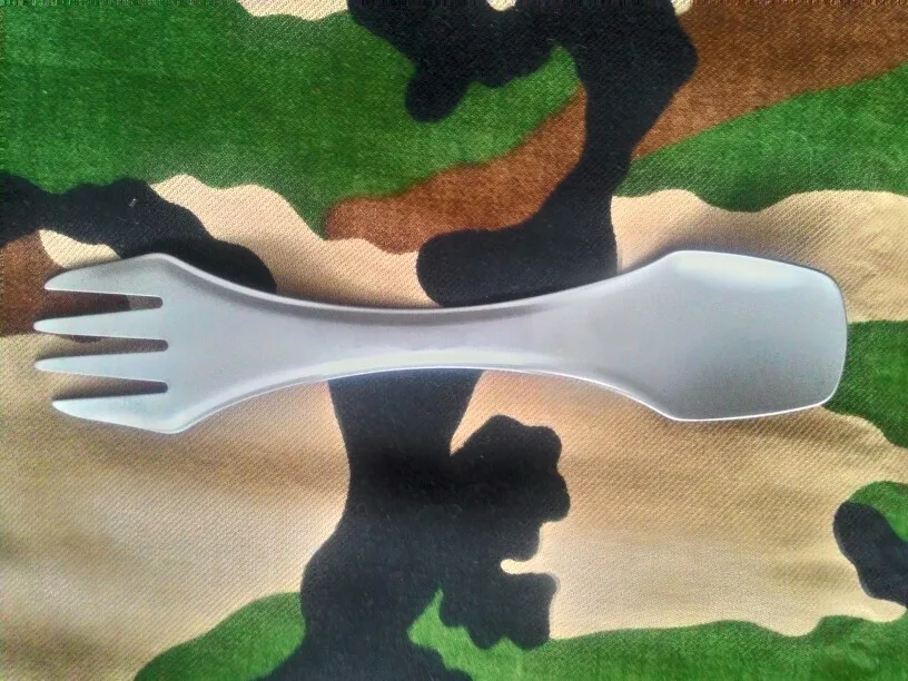 Прикольная вилка-ложка, легкая, гнуть пробовал, пружинит. Размер как у десертной. Навернуть гречки с тушенкой или консервы в походе - в самый раз. Для приёма пищи - то,что нужно. Валить деревья - не получится, согнётся ;)
