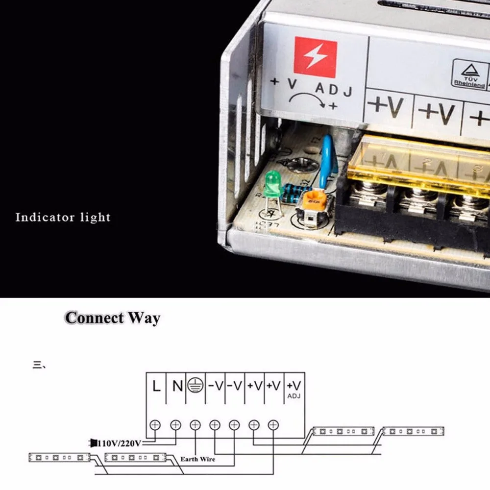 Преобразователь питания для светодиодной ленты, 110-220 В переменного тока в 5 В, 12 В, 24 В постоянного тока