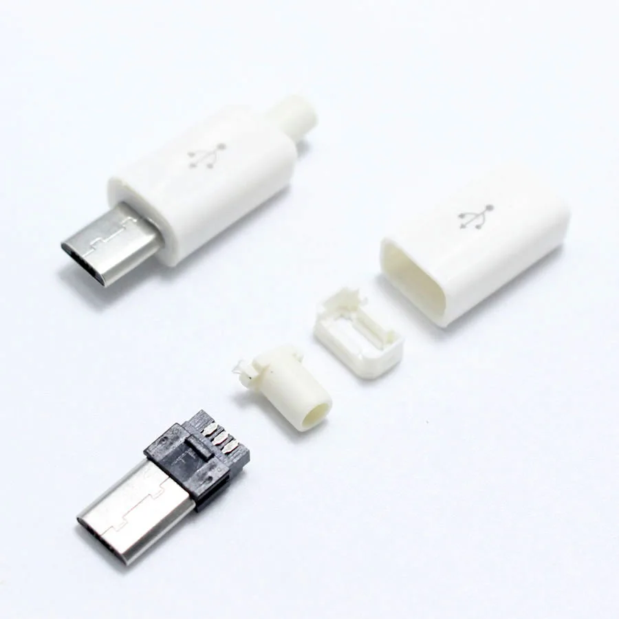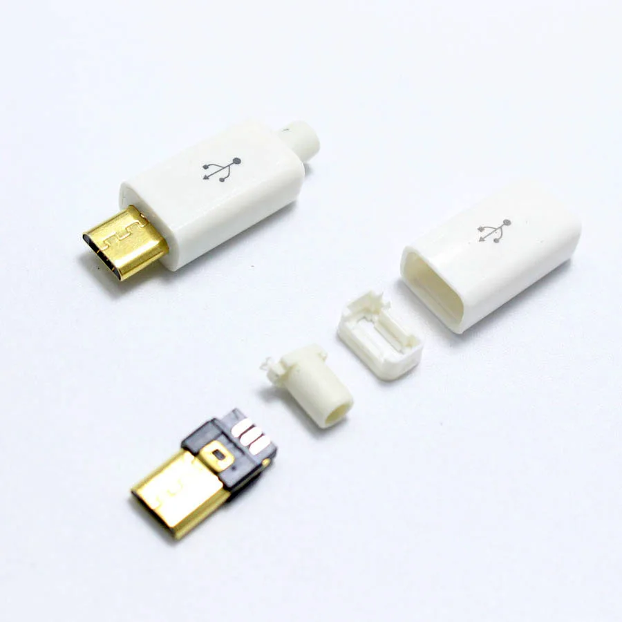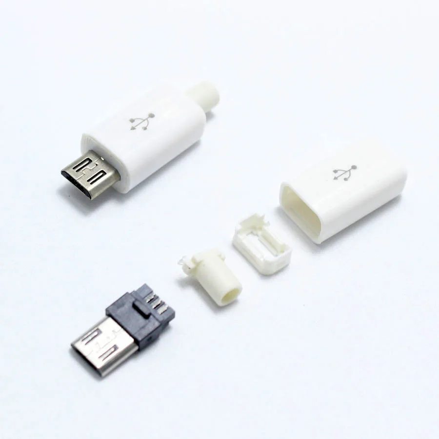 10 комплектов, микро USB 5PIN, сварочный тип, штекер, коннекторы, зарядное устройство 5 P, USB Хвостовая зарядка, розетка 4 в 1, белый, черный