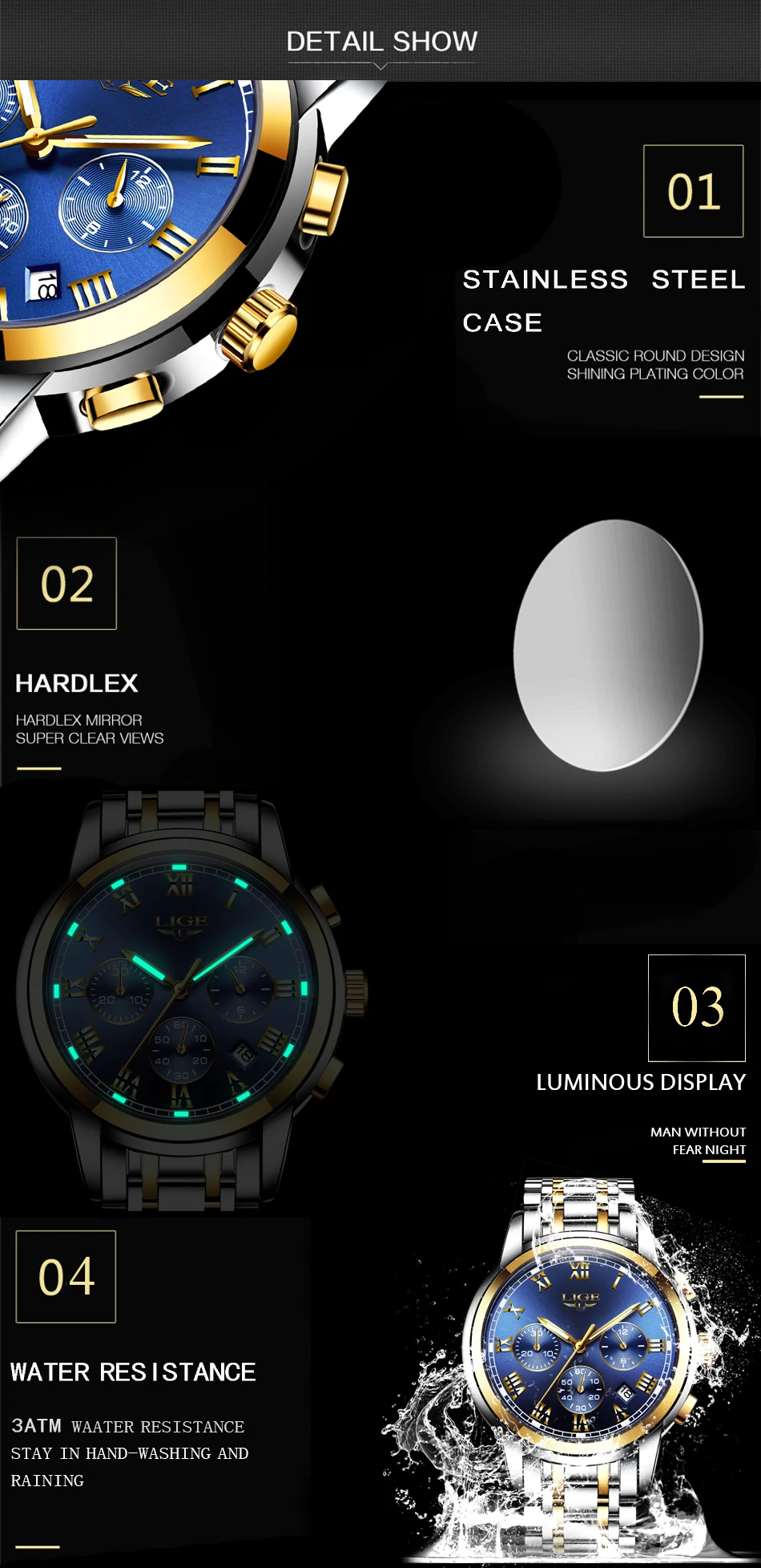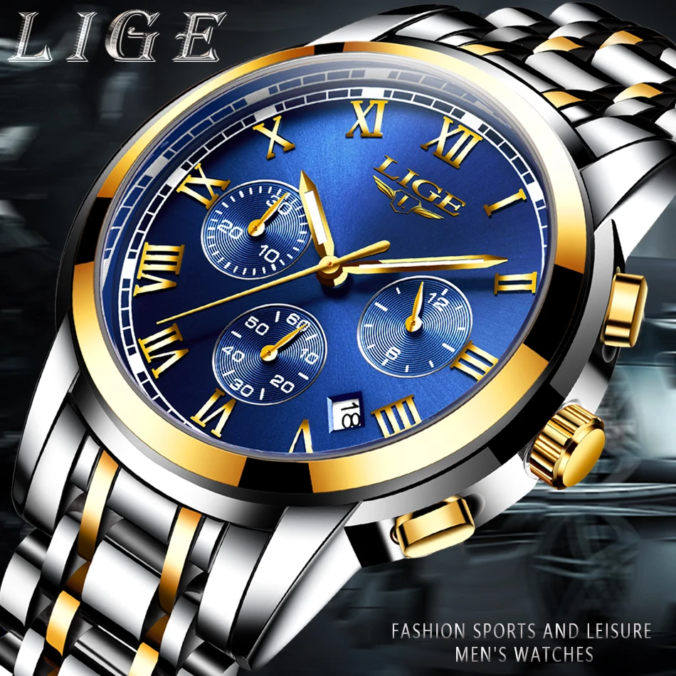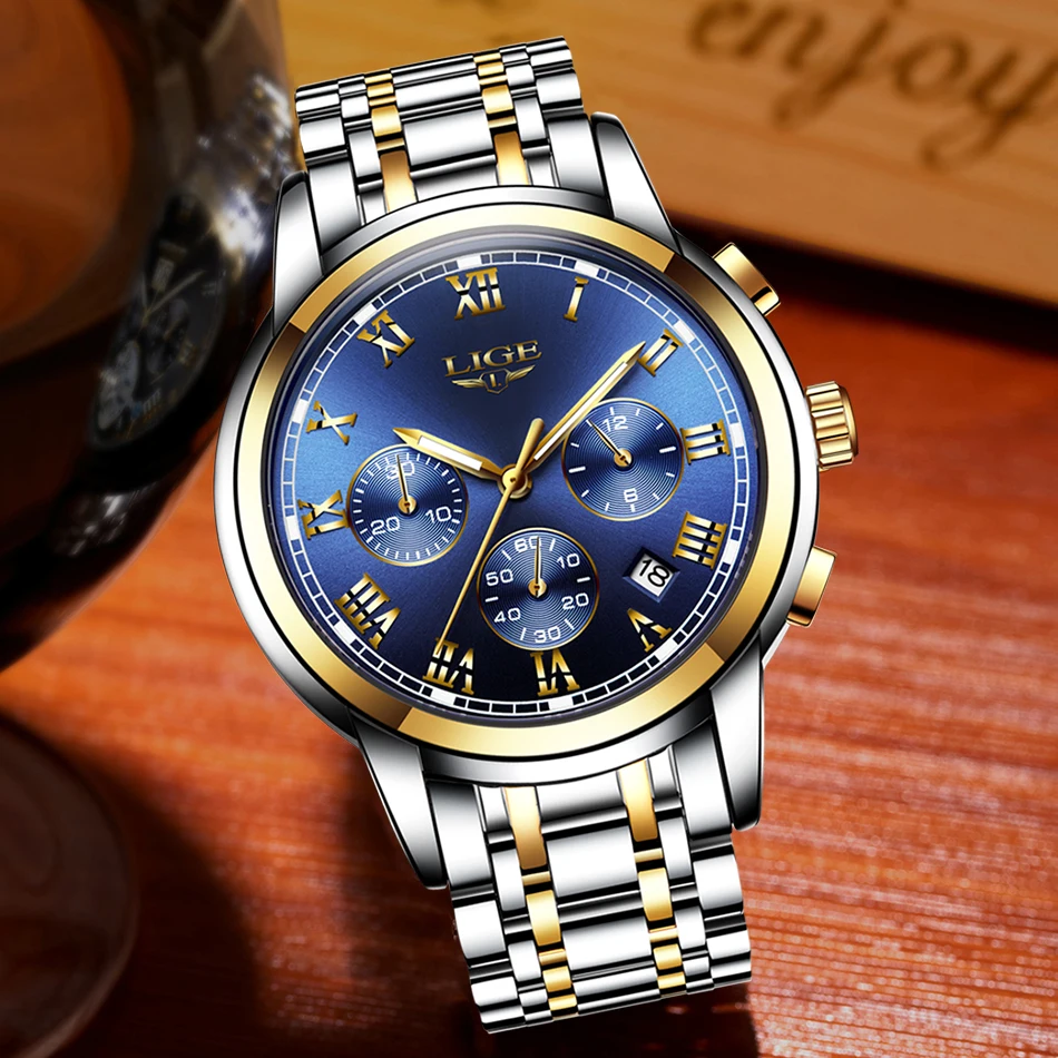 Часы наручные LIGE Мужские кварцевые, роскошные Брендовые спортивные водонепроницаемые полностью стальные, с хронографом, 2022