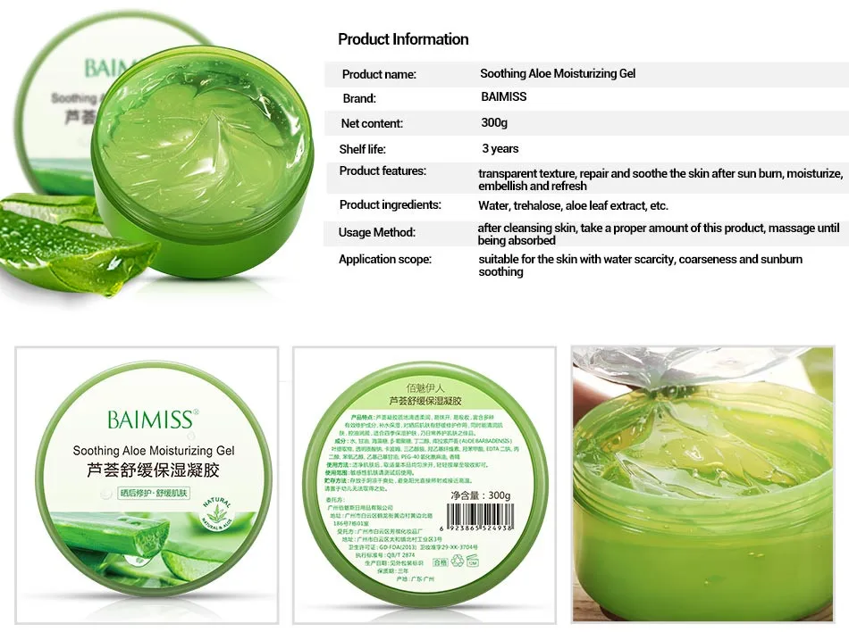 Гель для лица BAIMISS с алоэ вера, крем для лица от акне, шрамов, уход за кожей лица, лечение от прыщей, отбеливание, растяжки, увлажняющий гель 300 г