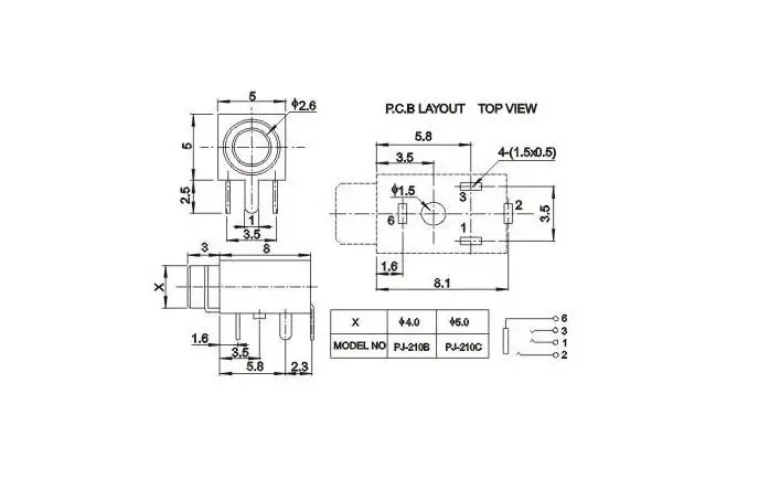 10 шт. 2,5 мм гнездовой аудио разъем 4 Pin DIP разъем для наушников PJ-210B