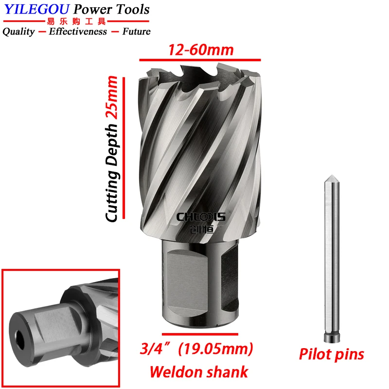 12-60 мм x 25 мм кольцевой резак из быстрорежущей стали (хвостовик 34 дюйма). 1 дюйм, высокоскоростная стальная кольцевая пила для магнитной дрели Altra, Eurboor, BDS, рукато
