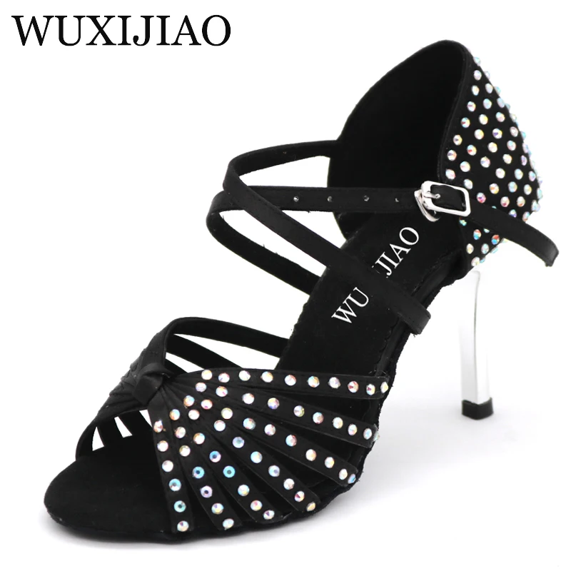 Женские сандалии WUXIJIAO, атласные бальные туфли для латиноамериканских танцев, с золотым каблуком, 85 мм
