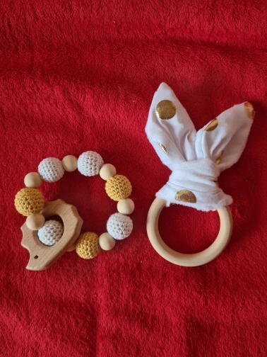 Деревянные браслеты-прорезыватели с заячьими ушками, 2 шт.1 комплект