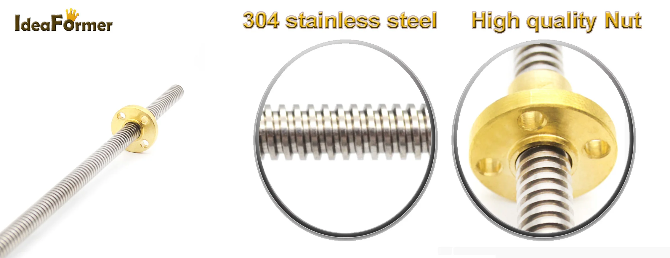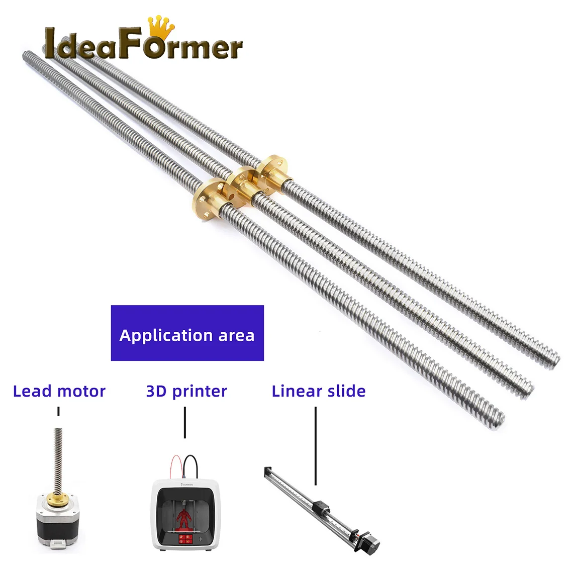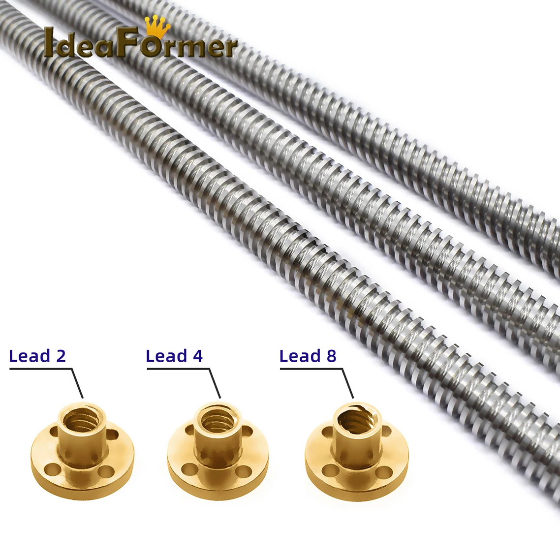 Свинцовый винт для 3D-принтера, диаметр 8 мм, резьба 248 мм, Длина 200250300350400500600 мм, трапециевидный шпиндель с медной гайкой