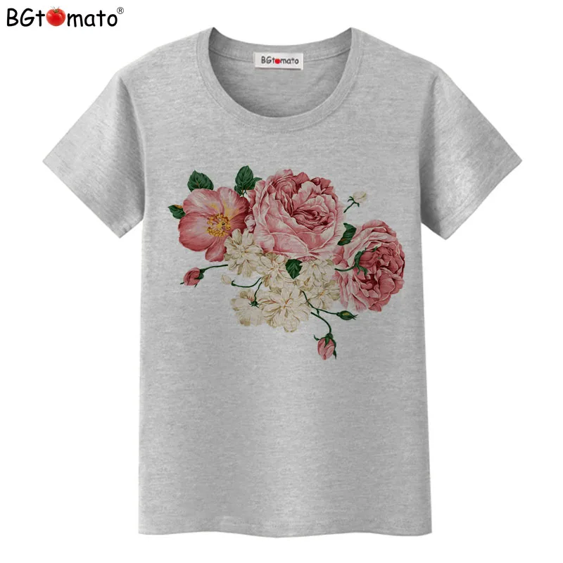 Женская футболка BGtomato с цветочным принтом, новая летняя женская футболка, модные женские топы с розами, футболки, женские топы, блуза
