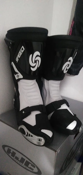 Высококачественные ботинки Gore Tex. Удобно и безопасно для езды на улице или на трассе в течение всего дня. Очень высокий материал из волокнистой кожи более прочный и дышащий, чем кожа. Удобно ходить.