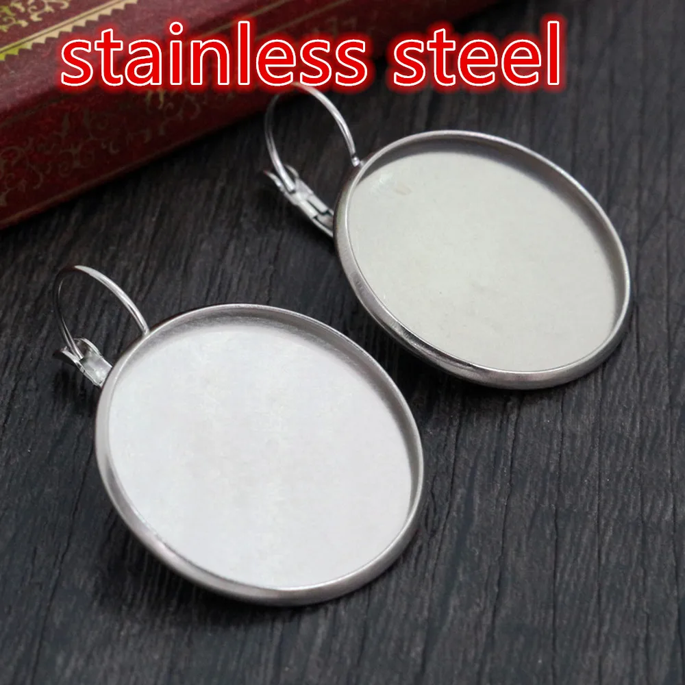 (Никогда не выцветает) 25 мм 10 шт французские серьги из нержавеющей стали с рычагом на заднюю часть пустаяОснова подходит для стеклянных кабошонов 25 мм, buttons-L5-10