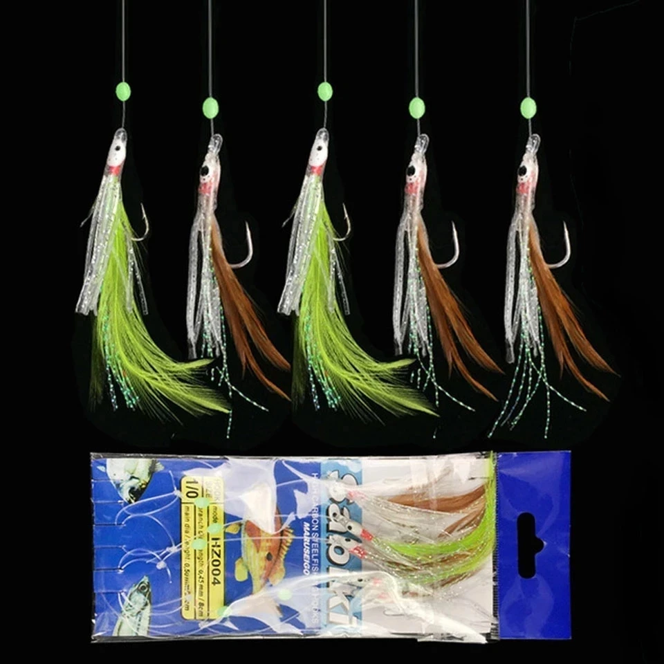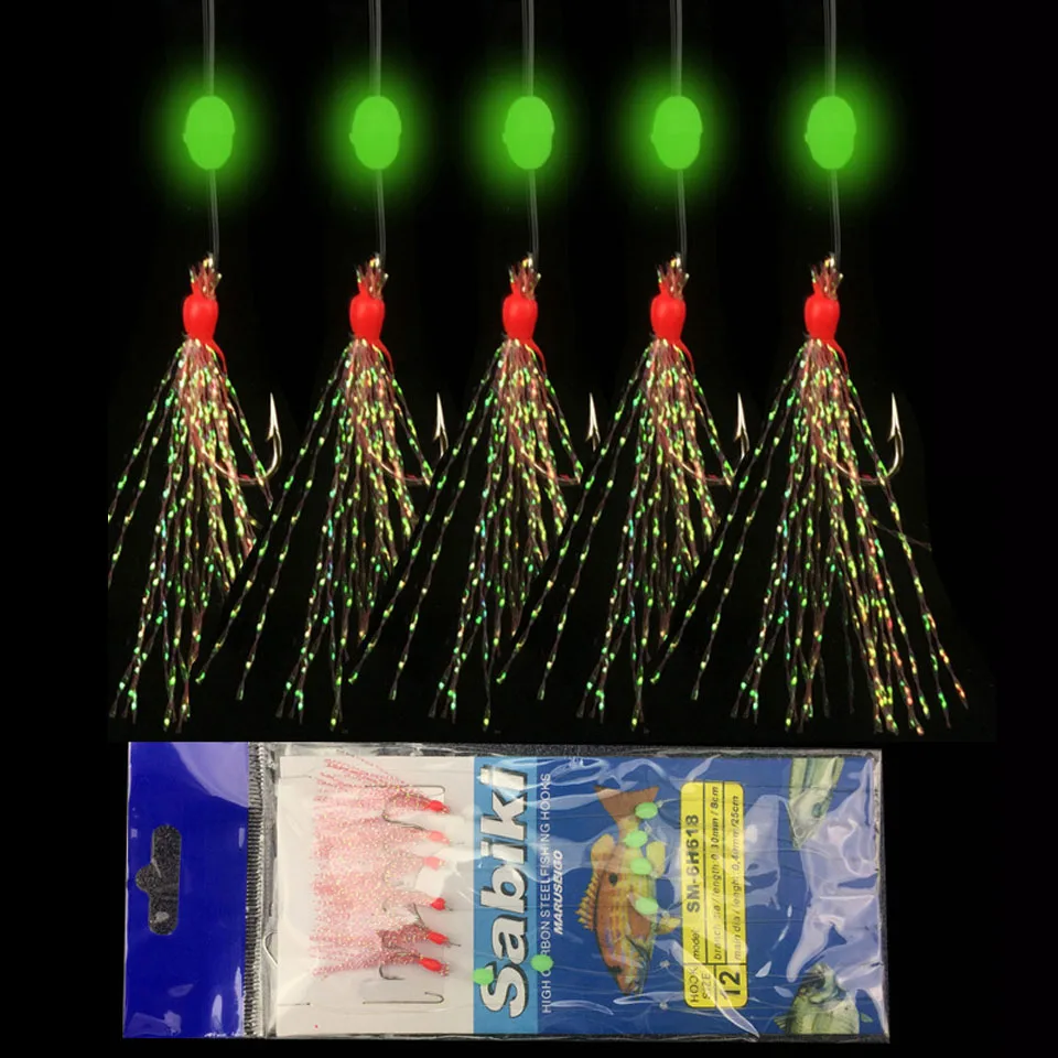 Набор рыболовных приманок с крючком, 5 шт.компл., 5 шт., Искусственные Силиконовые наживки, искусственная кожа, со светящейся бусиной мух, раттлин, Сабики