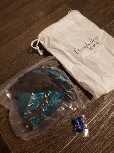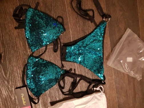 купальник красивый, как на фото. но сильно красится, поэтому нужно сразу постирать несколько раз. и в местах на сгибе пайетки чешутся.