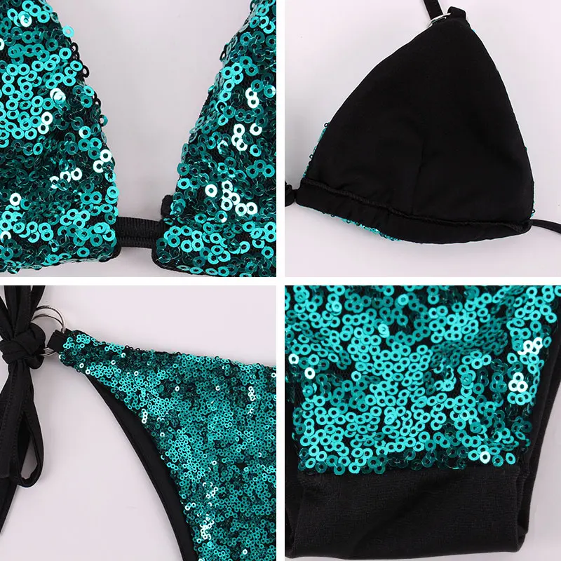 Andzhelika Купальник с пайетками раздельный пляж блестящий плавание бикини пайетки купальник женский