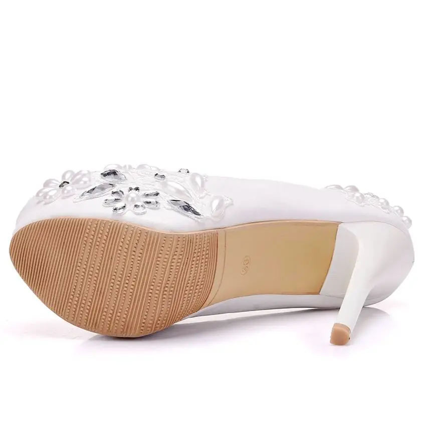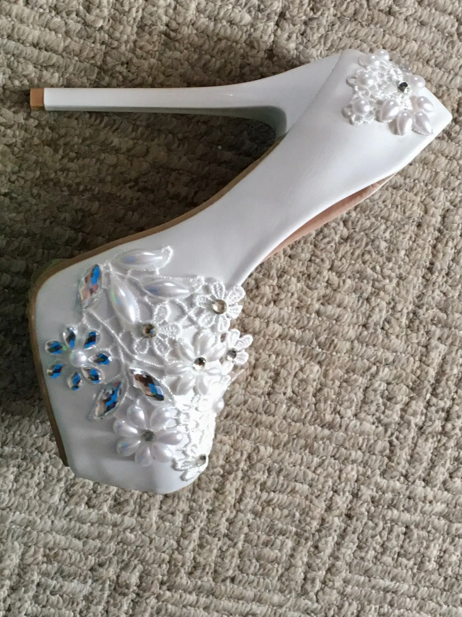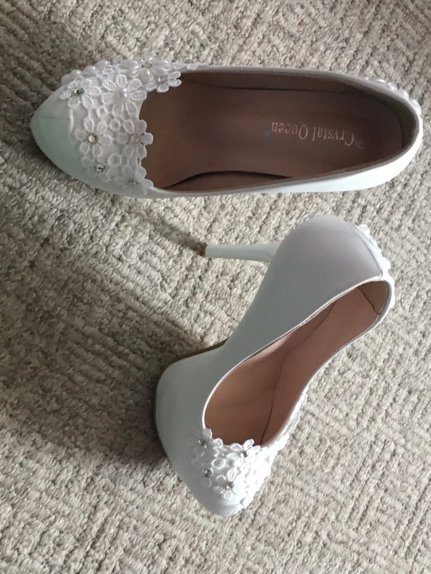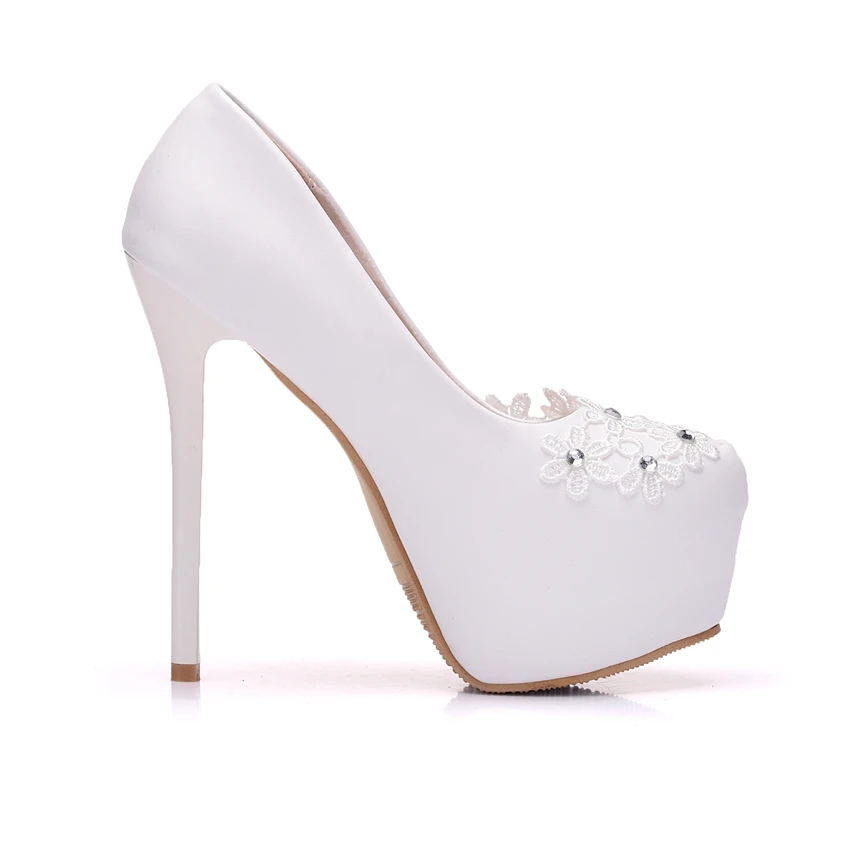 Туфли-лодочки свадебные на высоком каблуке, с кружевом