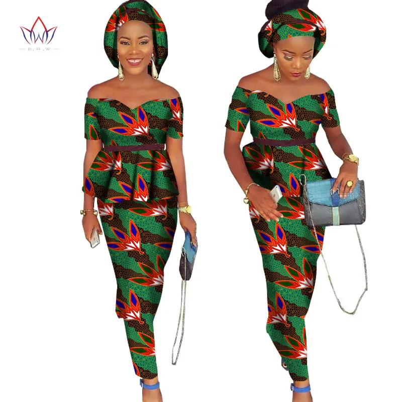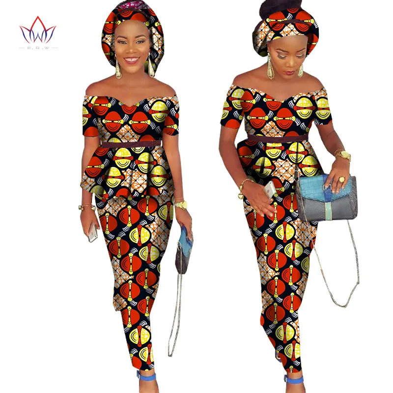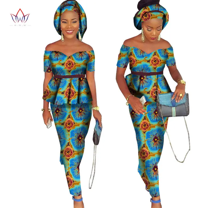 Африканский базин, богатое платье для женщин, комплект из 2 предметов, топ и юбка с Африканским принтом, облегающая юбка размера плюс 6XL WY1072