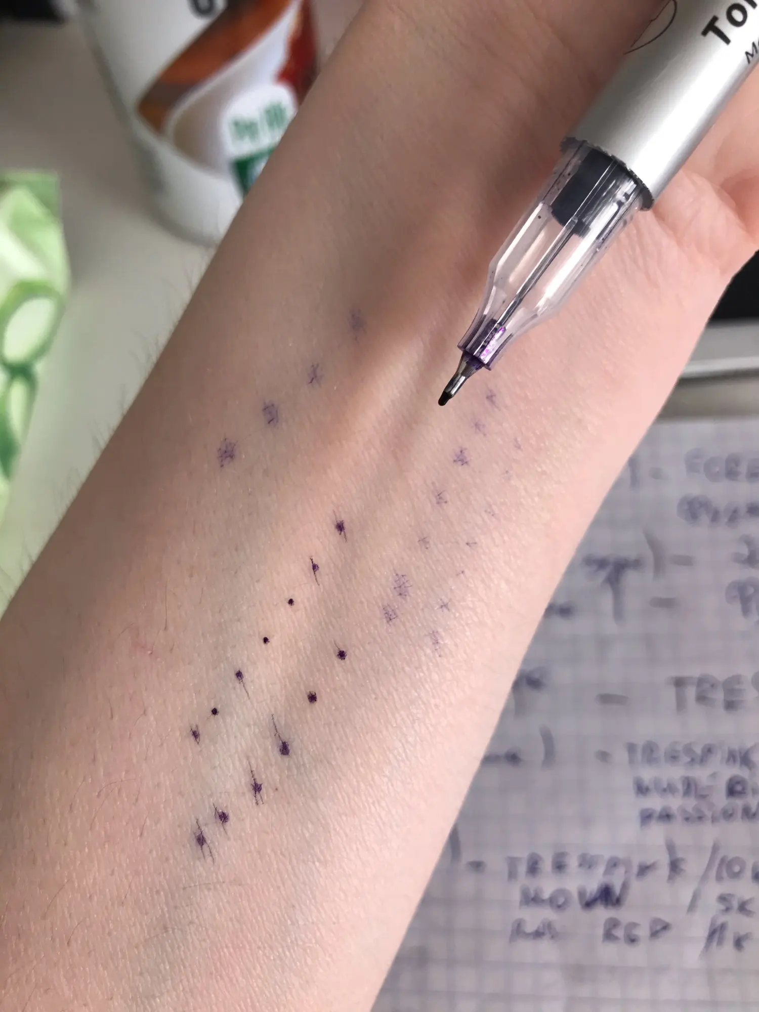 Это хирургический маркер!!! Вы что им подводки делаете, с ума сошли. Очень хороший маркер для своих целей, легко смывается спиртом, стойкий.